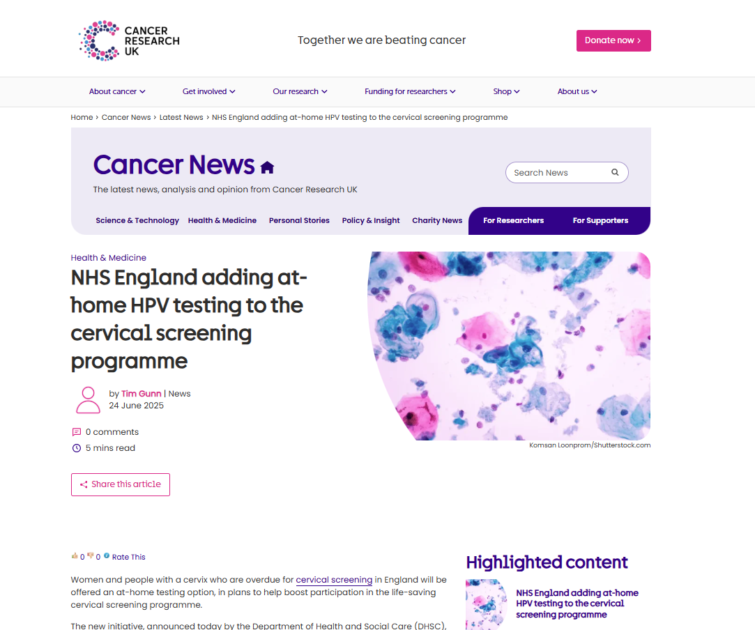 Active follow-up for NHS-Galleri was completed in the summer of 2024. NHS-Galleri is a randomised controlled trial of the multi-cancer early detection blood test developed by GRAIL. With over 140,000 participants taking part, it represents the world’s largest research trial of a multi-cancer early detection blood test. Passive follow-up is ongoing with analysis scheduled to take place at the end of 2025.